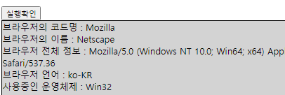 html += '브라우저의 이름 : ' + navigator.appName + '<br>';