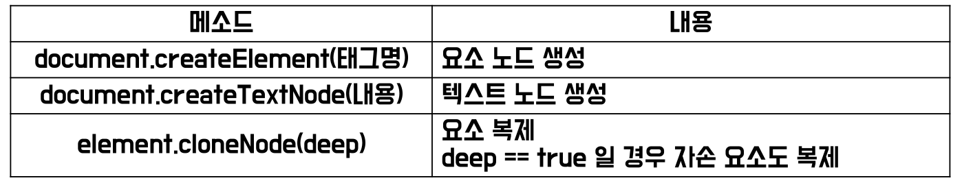 document.createTextNode(value) : 텍스트 노드를 만든다. (잘 쓰이지 않음) <br>