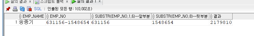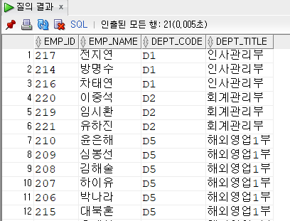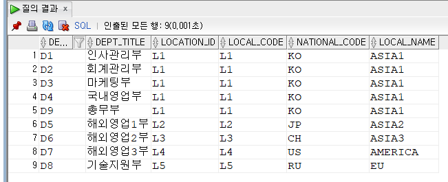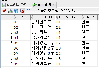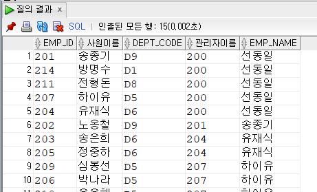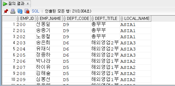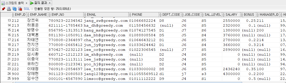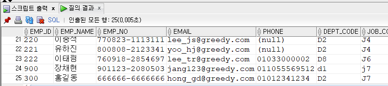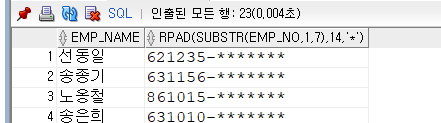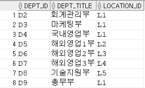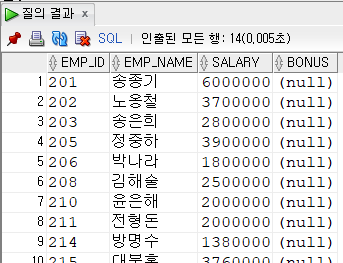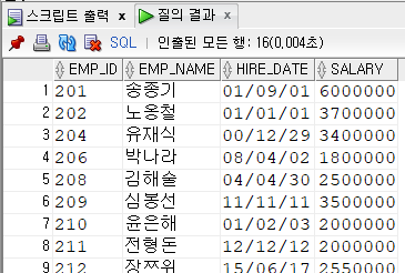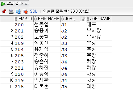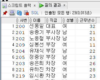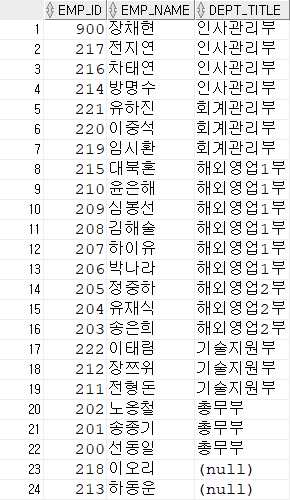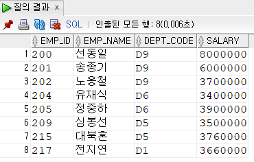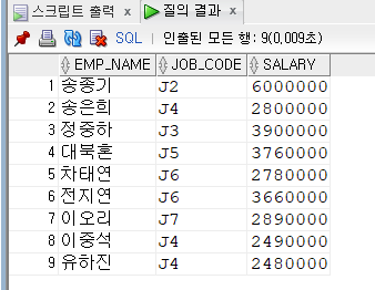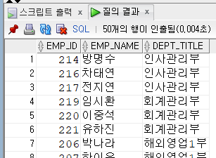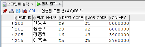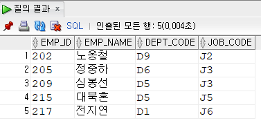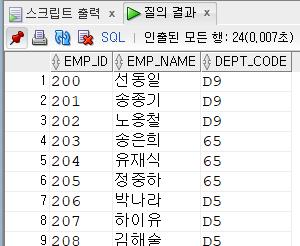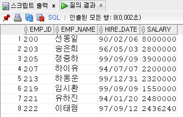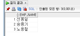 -- WHERE NOT EMP_NAME LIKE '김%';