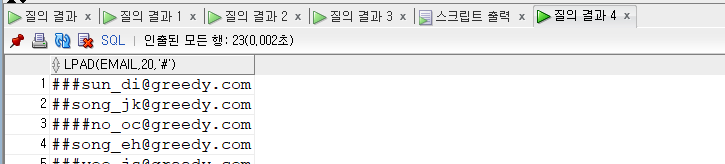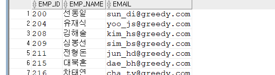 -- 사원의 사번, 이름, 이메일 주소 조회