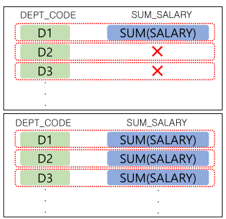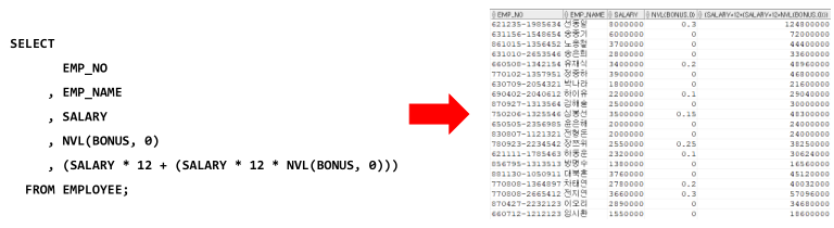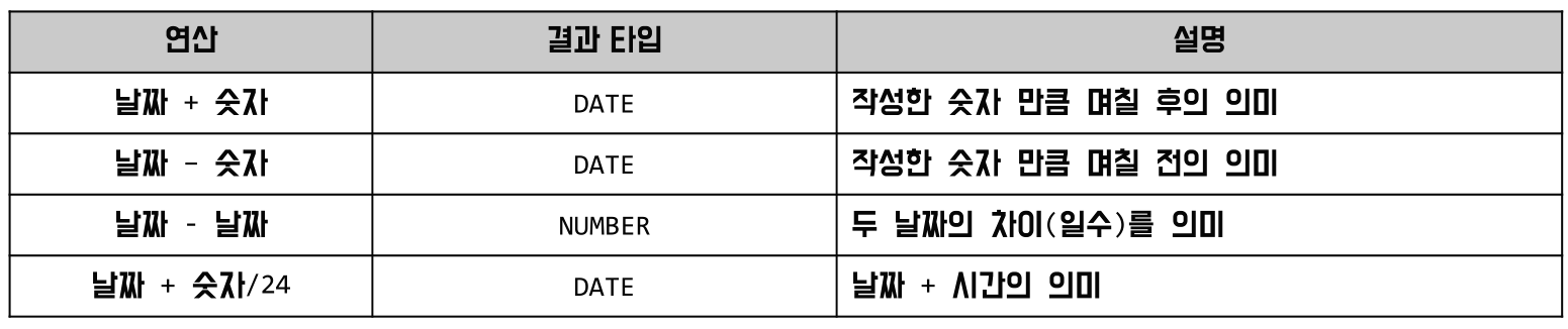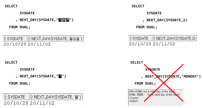 -- NOT (1) 컬럼명 앞 (2) 컬럼명 뒤(=BETWEEN 앞)