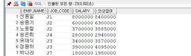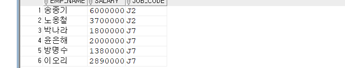 -- J7 직급인 직원의 이름, 급여, 직급코드 조회