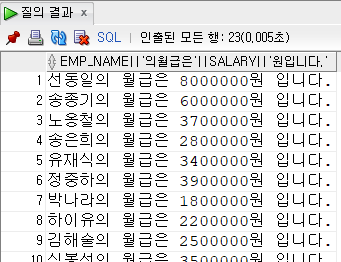 -- 문자 패턴 : '글자%' (글자로 시작하는 값),