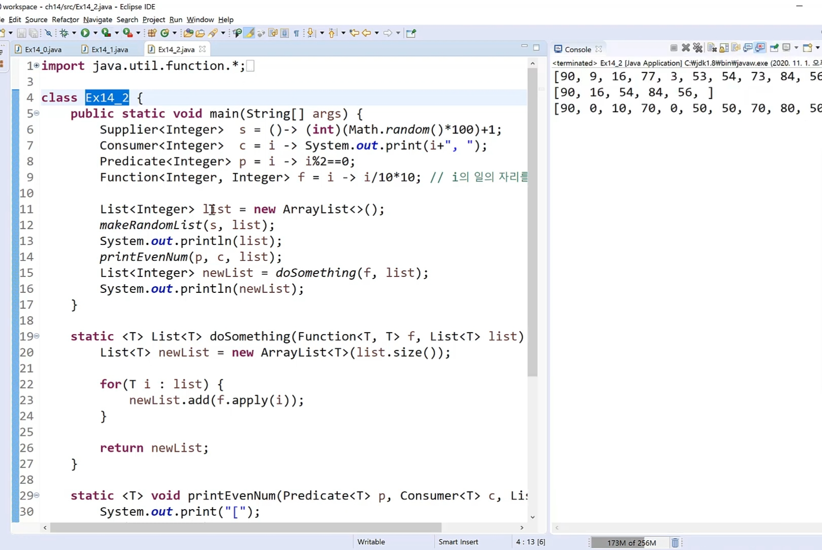 Predicate<T> : 조건식을 표현하는데 사용, 하나의 매개변수와 boolean 타입의 반환값