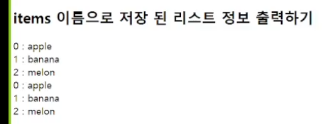 <h2>items 이름으로 저장 된 리스트 정보 출력하기</h2>