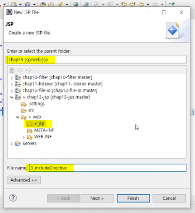 돌아와서 지시자 태그 내에 inclue 와 파일속성을 사용해 경로를 작성한다.