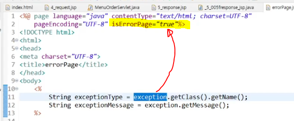 코드속 request객체는 서블릿에서 사용하던 httpServletRequest 인스턴스이다.