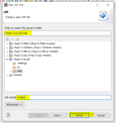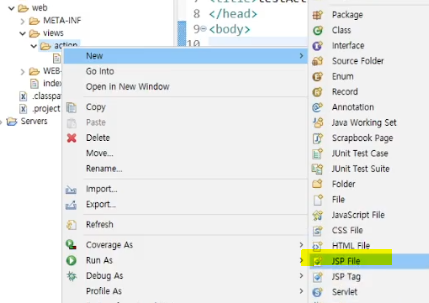 index.html 내에 요청과 응답을 테스트 할 페이지를 만들어 준후 경로에 맞게 jsp 파일을 생성한다.