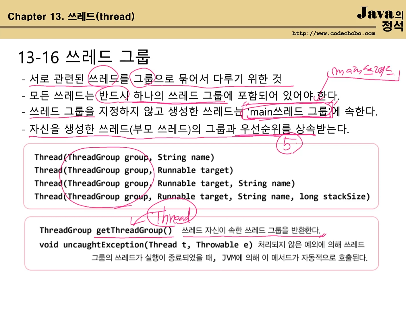 Thread를 상속받은 ThreadExl_1에서는 간단히 getName()을 호출하면 되지만, Runnable을 구현한 ThreadExl_2에는 멤버라고는 run()밖에 없기 때문에 Thread클래 스의 getName()을 호출하려면, ‘Thread.currentThread().getName()' 와 같이 해야한다.