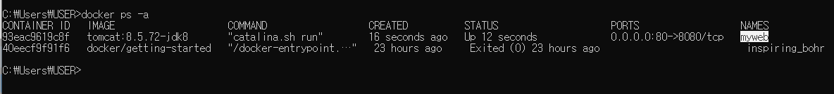 생성된 이미지로 컨테이너 실행