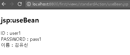 java class를 참조하여 빈 객체를 생성하고, setProperty와 getProperty를 통해 값을 저장, 조회할 수 있다.
