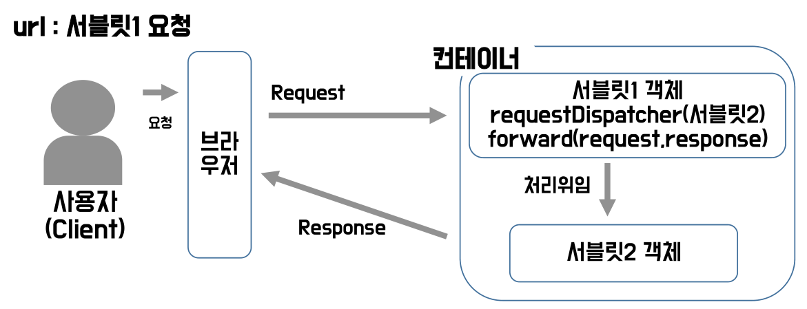 * 또한 forward 방식은 해당 서블릿의 존재를 client가 알 필요가 없어