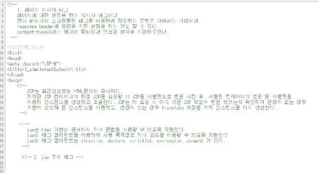이후 페이지 소스 보기 시 html 주석 태그는 나오지만 jsp 주석 태그는 출력되지않는 것을 확인할 수 있다.